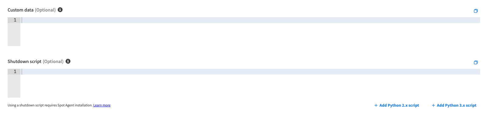 Once you have added the script for installing the Spot Agent, you can add the actual shutdown script.