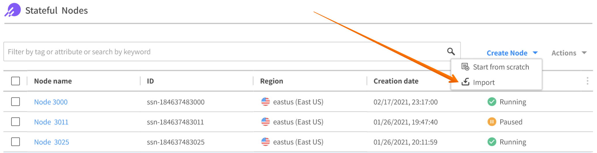 In the left menu in the Spot console, click Elastigroup> Stateful Nodes.